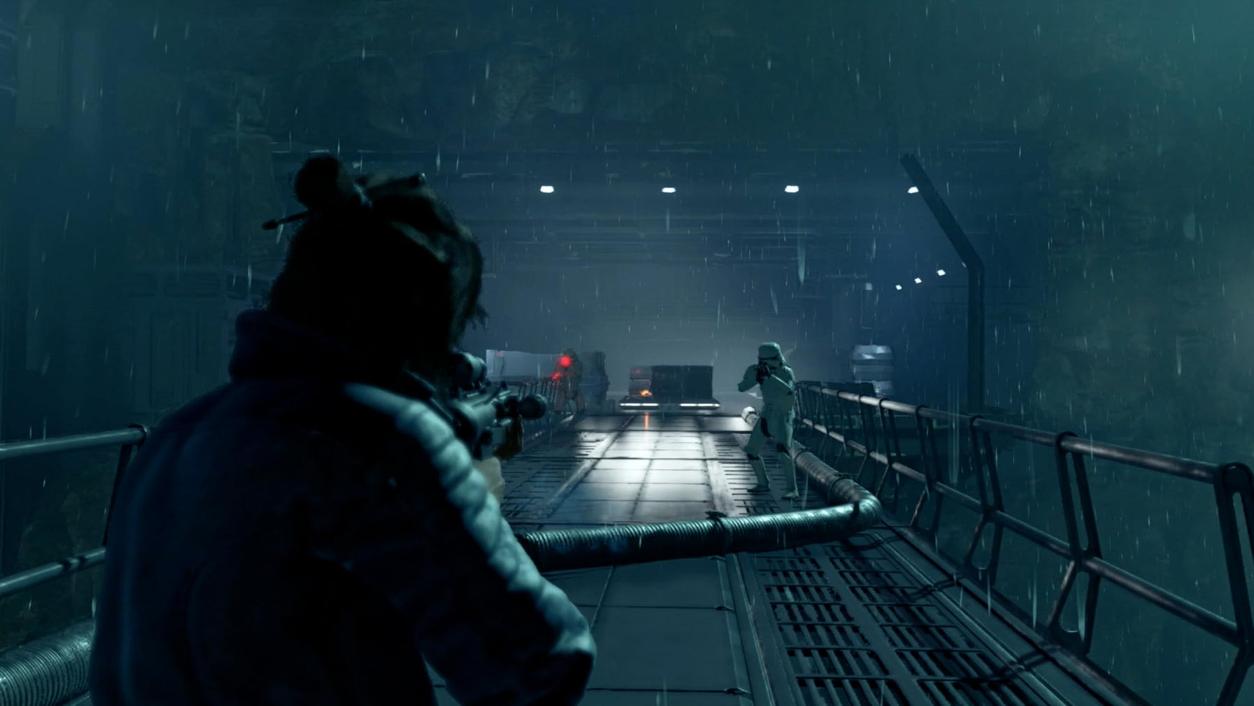 - Explore diverse environments on foot and by speeder, including cities, cantinas, and vast outdoor landscapes
