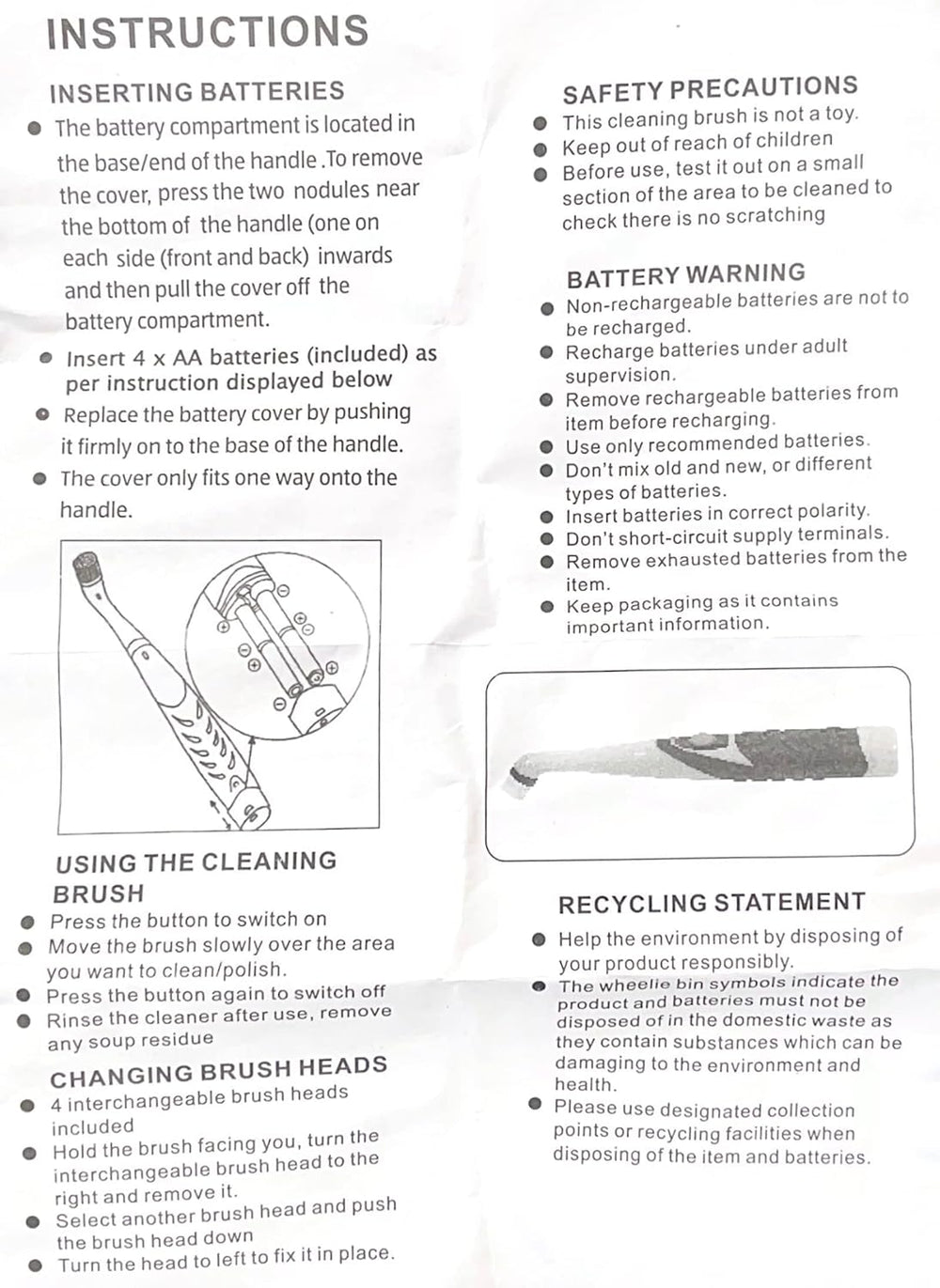 • Electric Miracle Scrubber Tool with 4 interchangeable brush heads