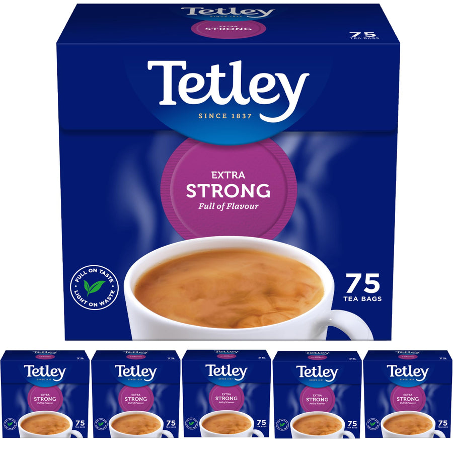 Tetley Extra Strong Black Tea Bags - 450 Bags (6 x 75) - Bold Assam Blend, Rainforest Alliance Certified
